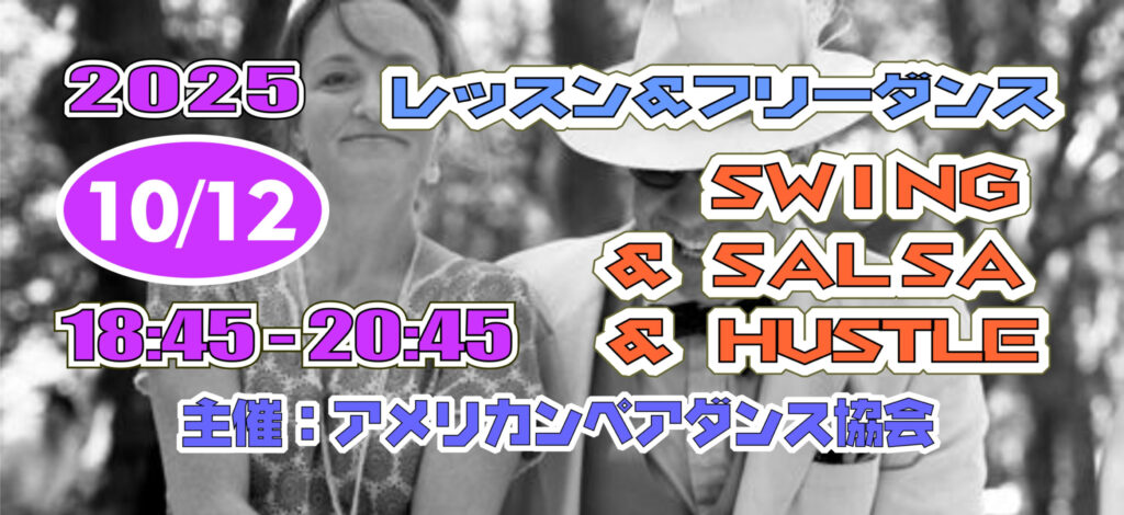 スウィング(ジルバ)、サルサ、ハッスルのアップテンポの3種目のダンスを踊るイベントです。